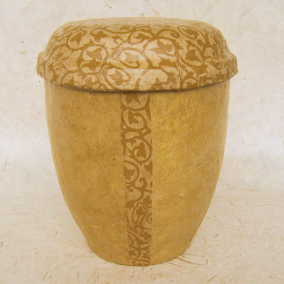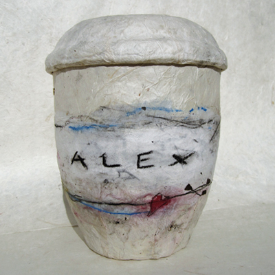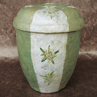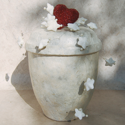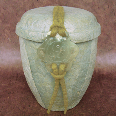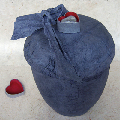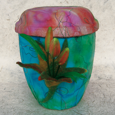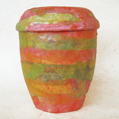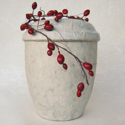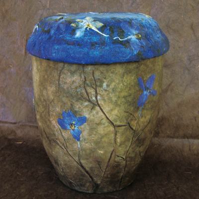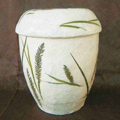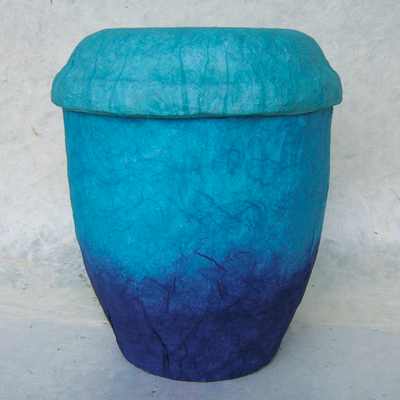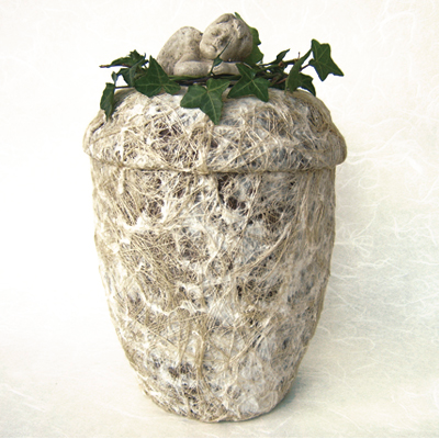 Handgestaltete organische Urnen – wimmerurnen aus Pappmaché – für einen ganz persönlichen Abschied. Die Urnen haben eine Höhe von ca. 25 cm und einen Durchmesser von ca. 21 cm. Sie werden mit weißen oder schwarzen Versenkhilfen (Kunststoff mit messingfarbenen oder schwarzen Verschlussköpfen) oder mit individuell zur Urne passenden Versenkhilfen geliefert.